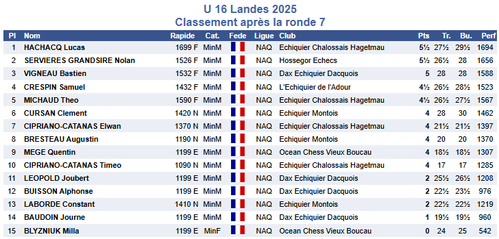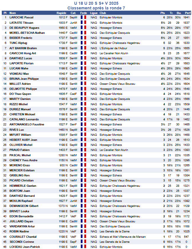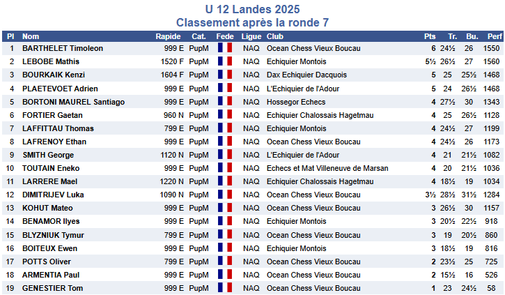 Échiquier Montois Non classé Dimanche 14 décembre 2025 – Championnat des Landes