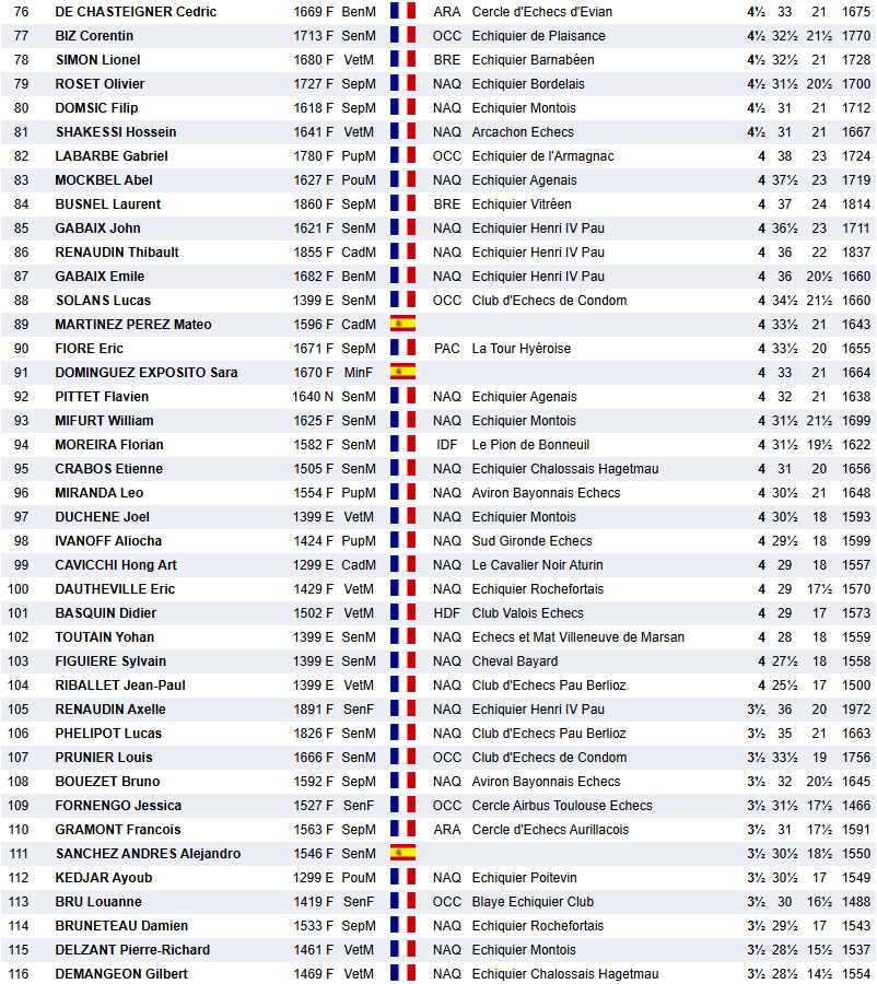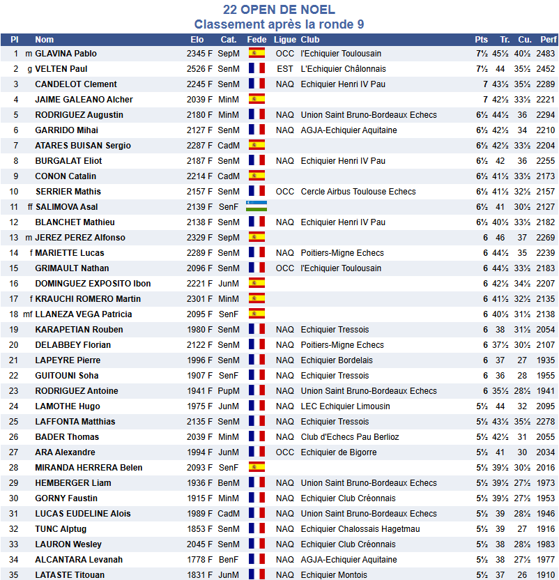 le 22e open aura vu la victoire du Maitre International espagnol Pablo GLAVINA devant le Grand-Maitre International Paul VELTEN, le Palois Clément CANDELOT termine à la 3e place sur le podium