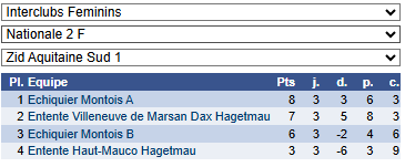 Dimanche 8 mars 2026 – Nationale 2 féminine 9 March 20269 March 2026| Categories: Non classé Post navigation PREVIOUS Previous post: Championnat d’Aquitaine Jeune 2026NEXT Next post: Dimanche 15 mars 2026 – résultats des championnats