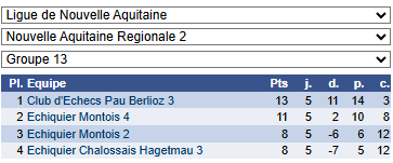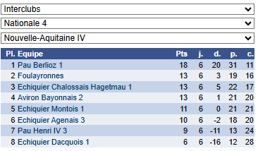 Dimanche 15 mars 2026 – résultats des championnats 16 March 202616 March 2026| Categories: Non classé En nationale 4 En régionale Post navigation PREVIOUS Previous post: Dimanche 8 mars 2026 – Nationale 2 féminineNEXT Next post: Dimanche 22 mars 2026 – Coupe J-C Loubatière
